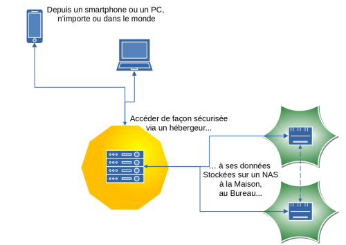 Les données sont auto-hébergée / stockées à la maison et ou au bureau avec une gestion simple grâce aux logiciels libres L'hébergement des données à la maison ou au bureau permet de stocker beaucoup de données à faible coû t